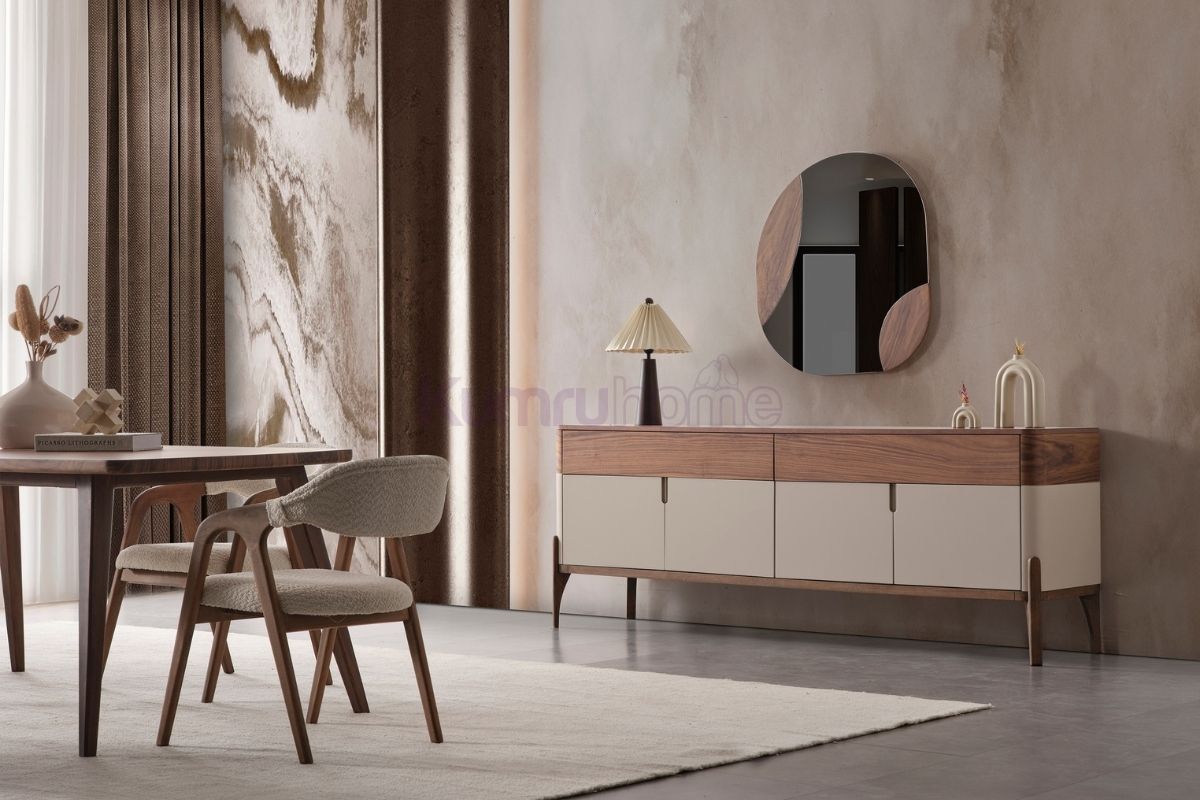 Kumru Home Yemek Odası Takımları 2026 koleksiyonu, şıklık ve fonksiyonelliği bir araya getirerek sofralarınızı modern yaşam alanlarına dönüştürür. 2026 mobilya trendlerine uygun olarak tasarlanan yemek odası takımları; doğal ahşap dokular, modern çizgiler ve zamansız renk seçenekleriyle hem günlük kullanım hem de misafir ağırlamak için ideal çözümler sunar.