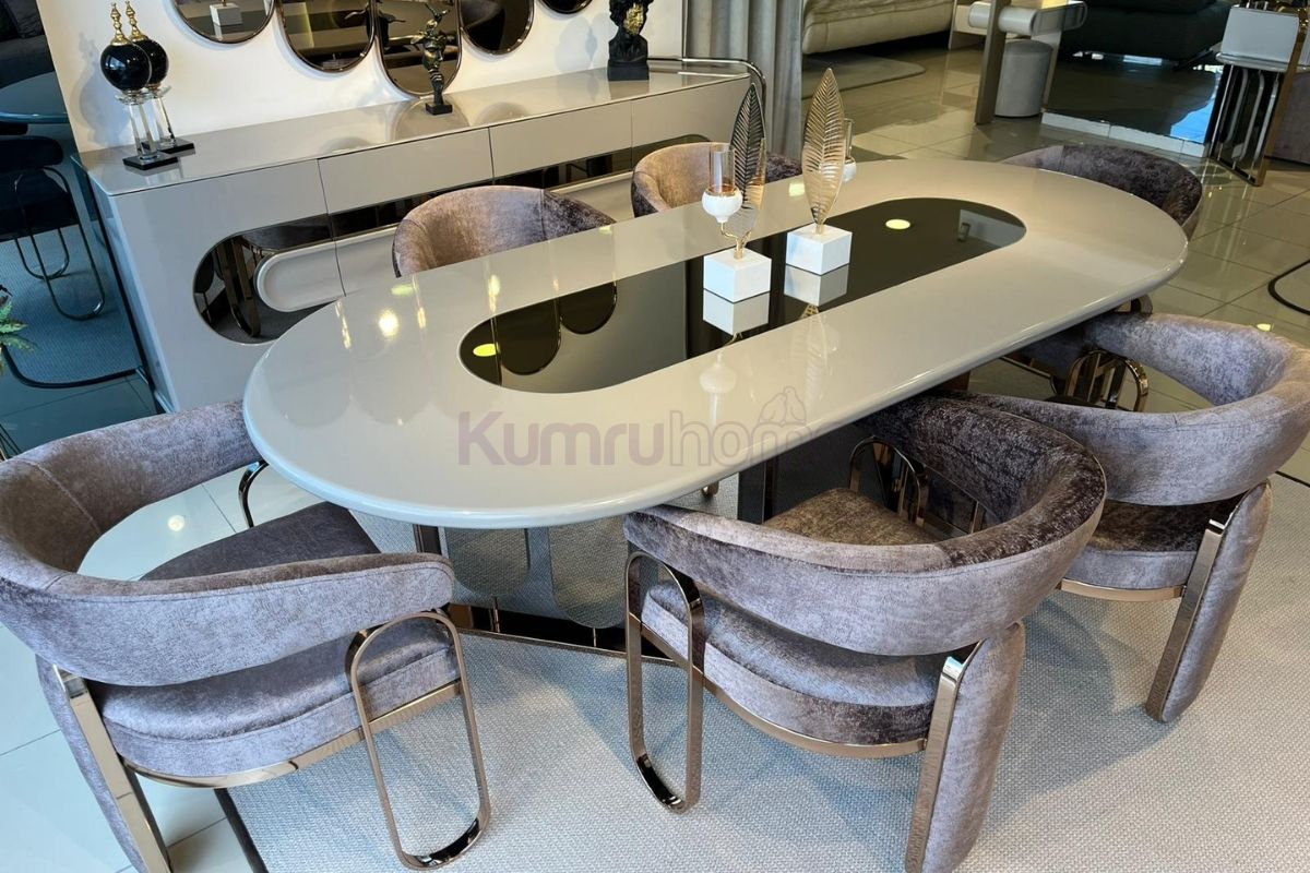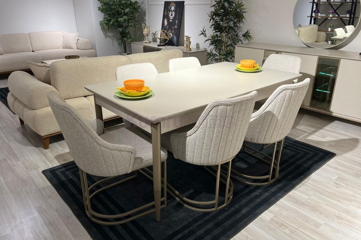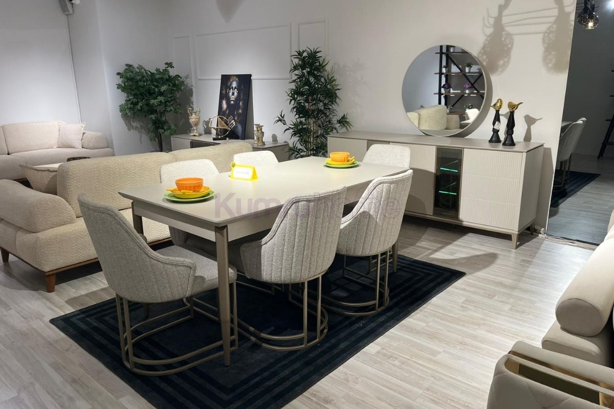 Napoli Yemek Odası Takımı, soft modern tasarım anlayışını zarif detaylar ve