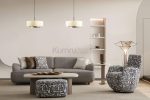 1. Premium Buklet Doku & Desen Uyumu: Ürünlerin tamamında kullanılan birinci sınıf buklet kumaş, dokunma hissini en üst seviyeye çıkarırken; kırlent ve berjerlerdeki soyut desen detayları takıma dinamik bir hava katar.